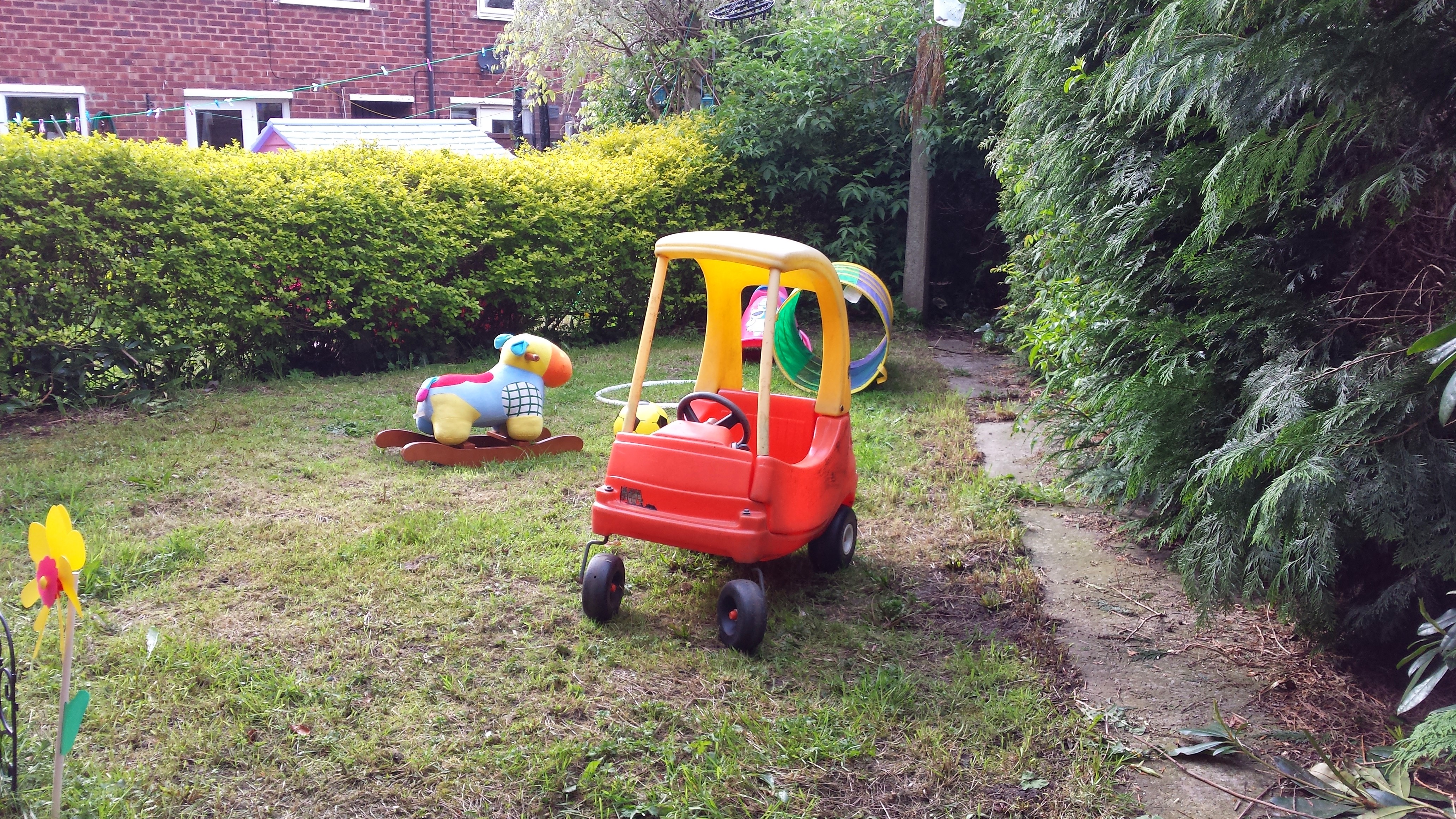 I have long term plans to remove our garage, fence the front garden and build a conservatory specifically as a play room. I will also be taking children to play groups to give them confidence and social skills with other children.